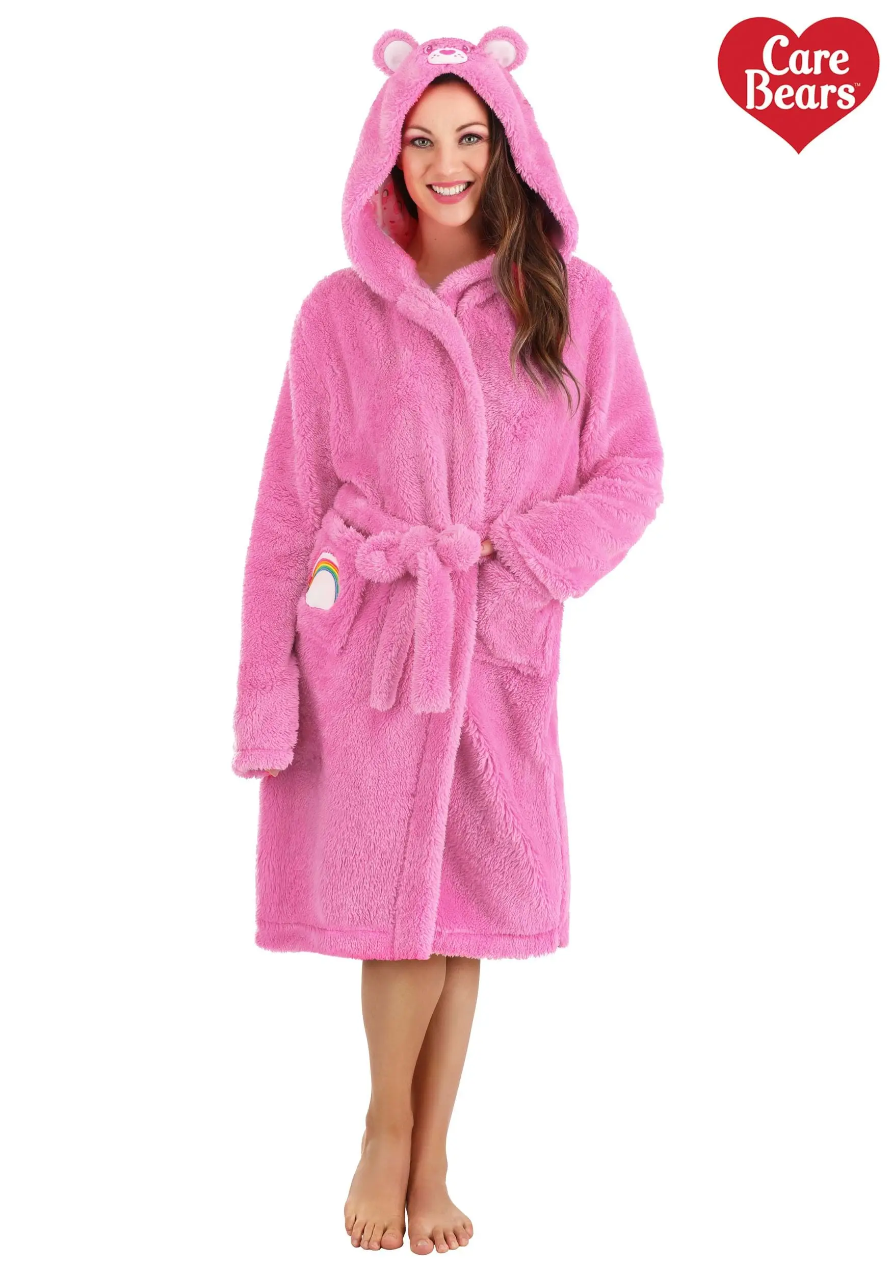It’s hard to wear a frown and a robe this cozy at the same time! Our Adult Cheer Bear Hooded Robe is constructed with microfiber fleece fabric for an exceptionally soft feel. The belt ties around the waist to keep the robe secure, and pockets on the front let you keep necessities close at hand.