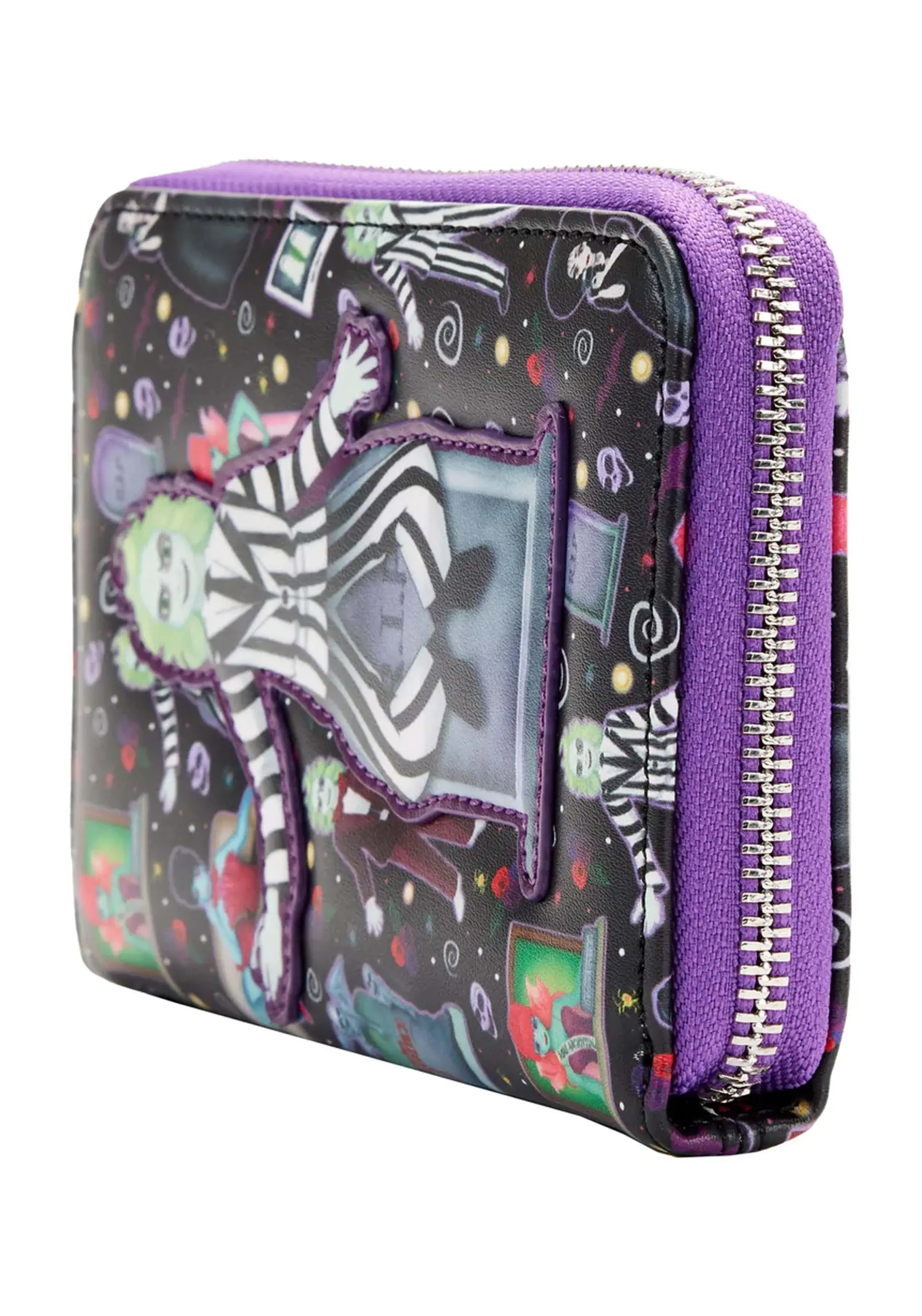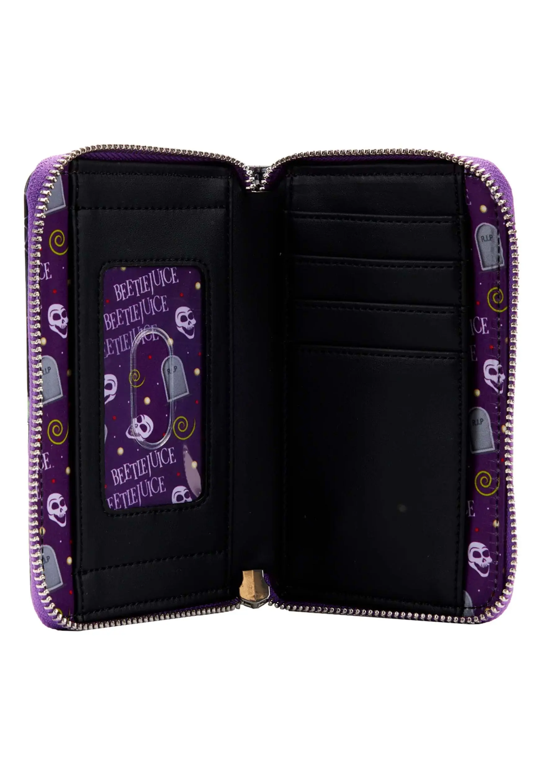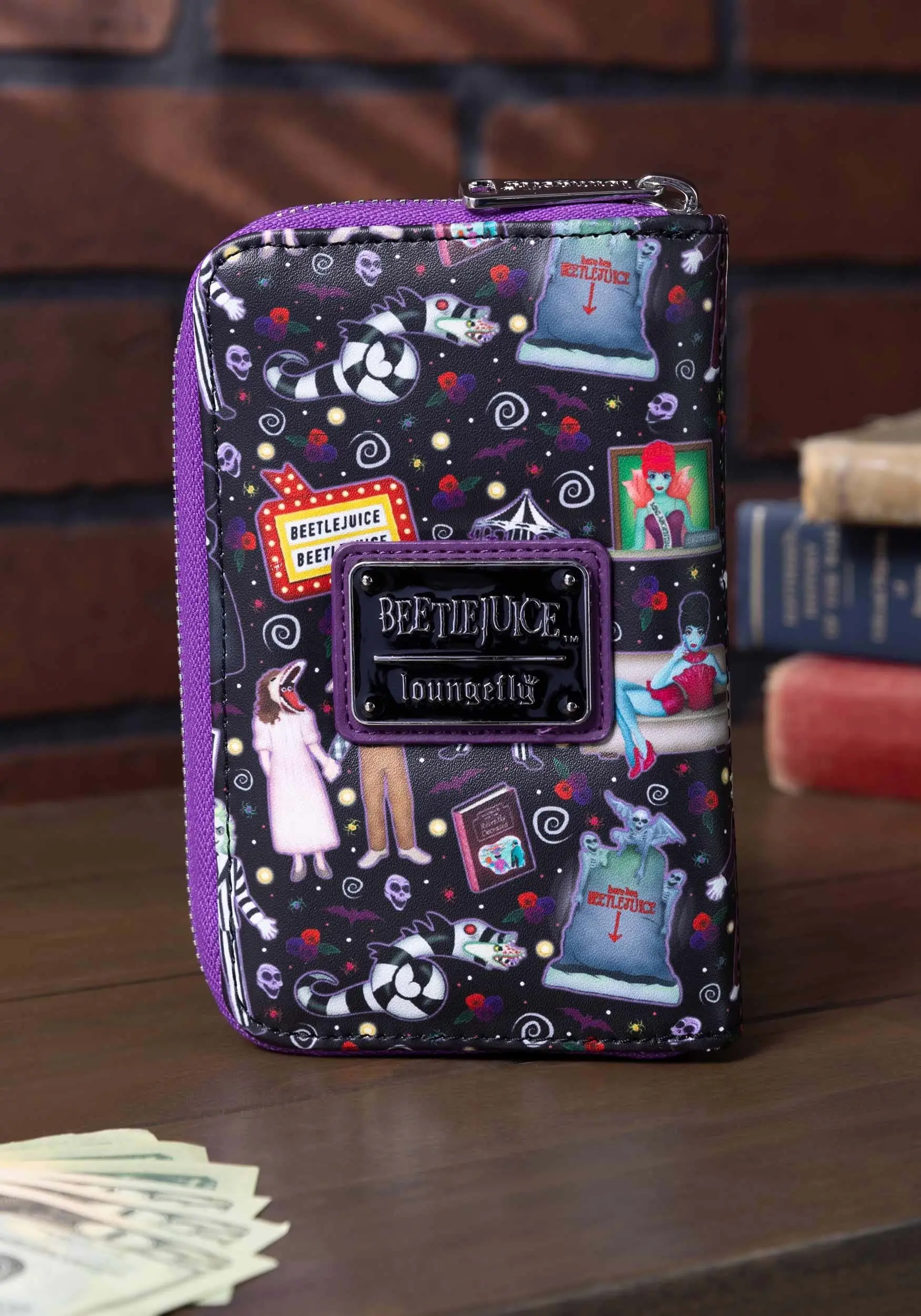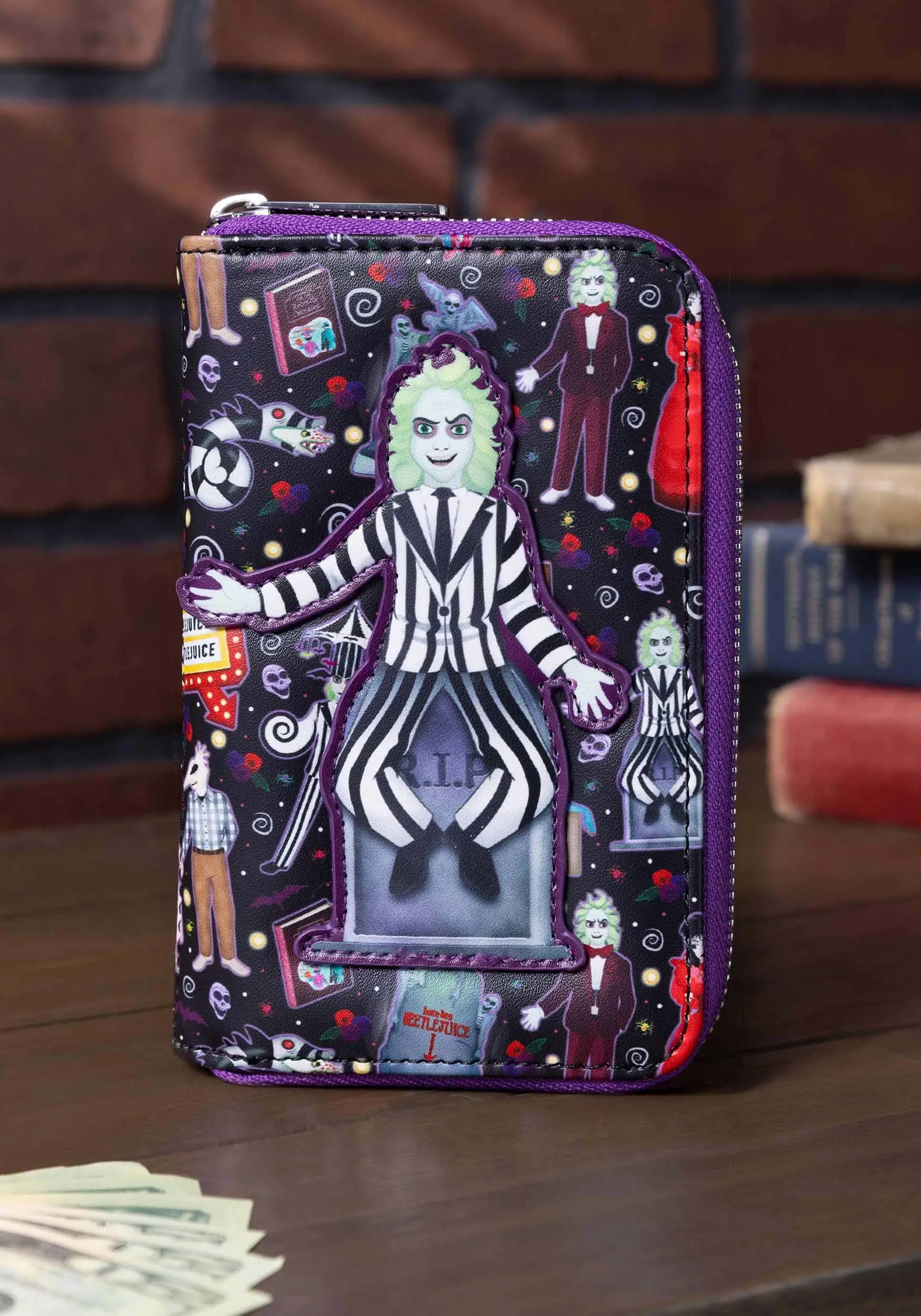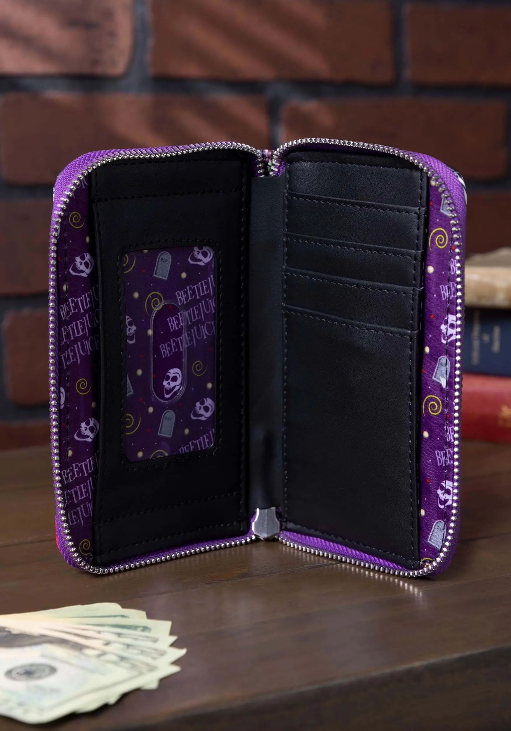 You can’t take it with you–or can you? If you have the choice to bring one thing with you, definitely pick this Loungefly Beetlejuice Icons All Over Print Icons Ziparound Wallet for Adults. The ghost with the most is front and center, surrounded by ghostly clones and other elements of the underworld. The zipper trim is a purple that really pops with BJ’s green hair, and the zipper itself is heavy-duty and holds up to all sorts of purse abuse. Your valuables will stay safe in this life and the next when you add this wallet to your cart.