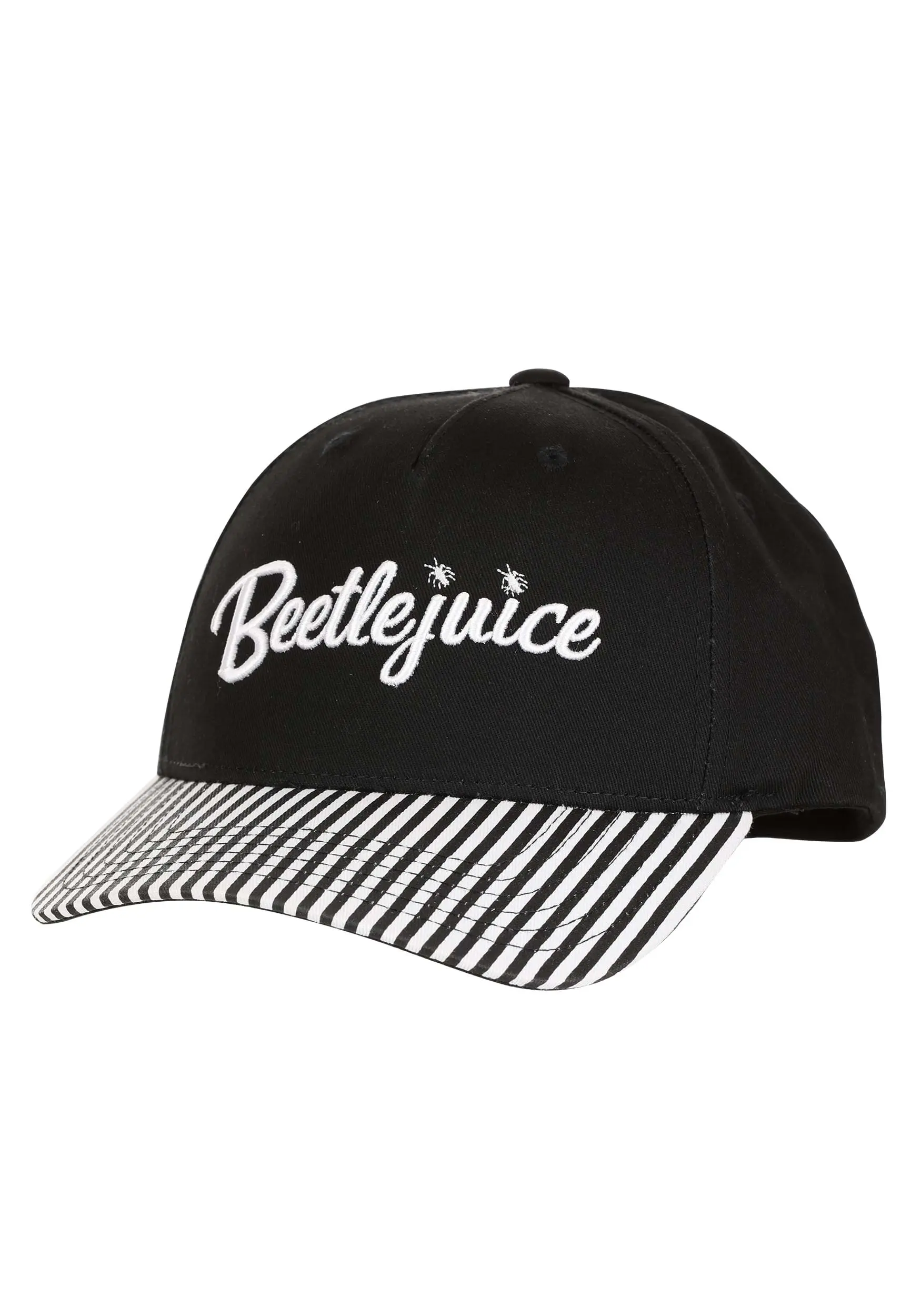 It’s like they took the aura of Beetlejuice and transformed it into a hat! This Beetlejuice Cosplay Hat is a classic, baseball cap-style dad hat that’s inspired by his iconic Tim Burton character. The bill has white and black stripes, just like his suit, and the front has his name embroidered on it. The back has a snap button size adjuster, so one size fits most. Just put it on… and it’s showtime!