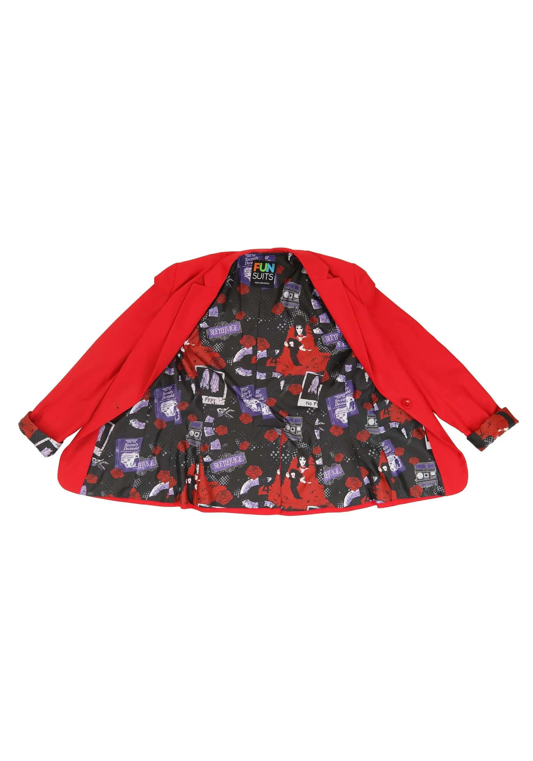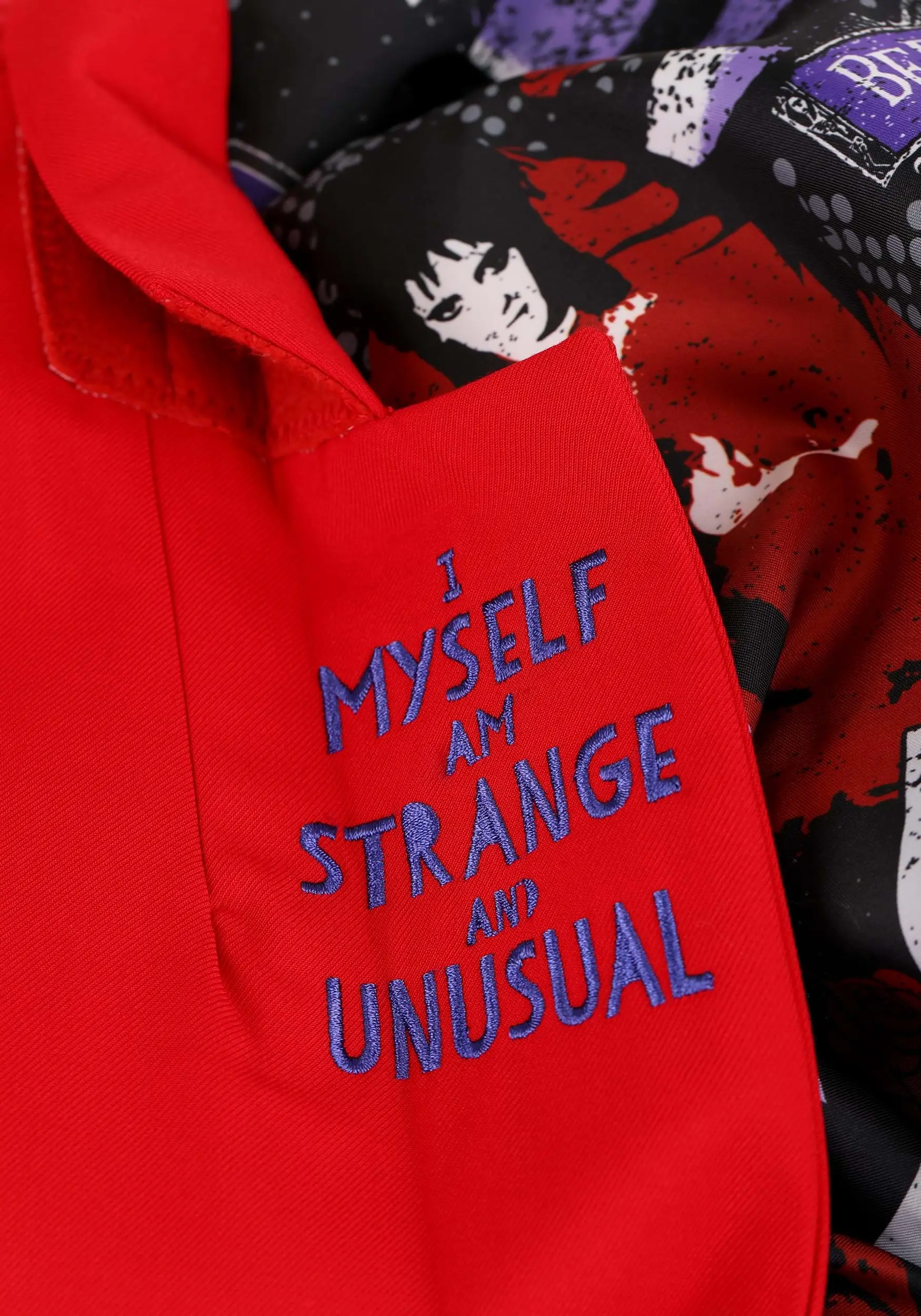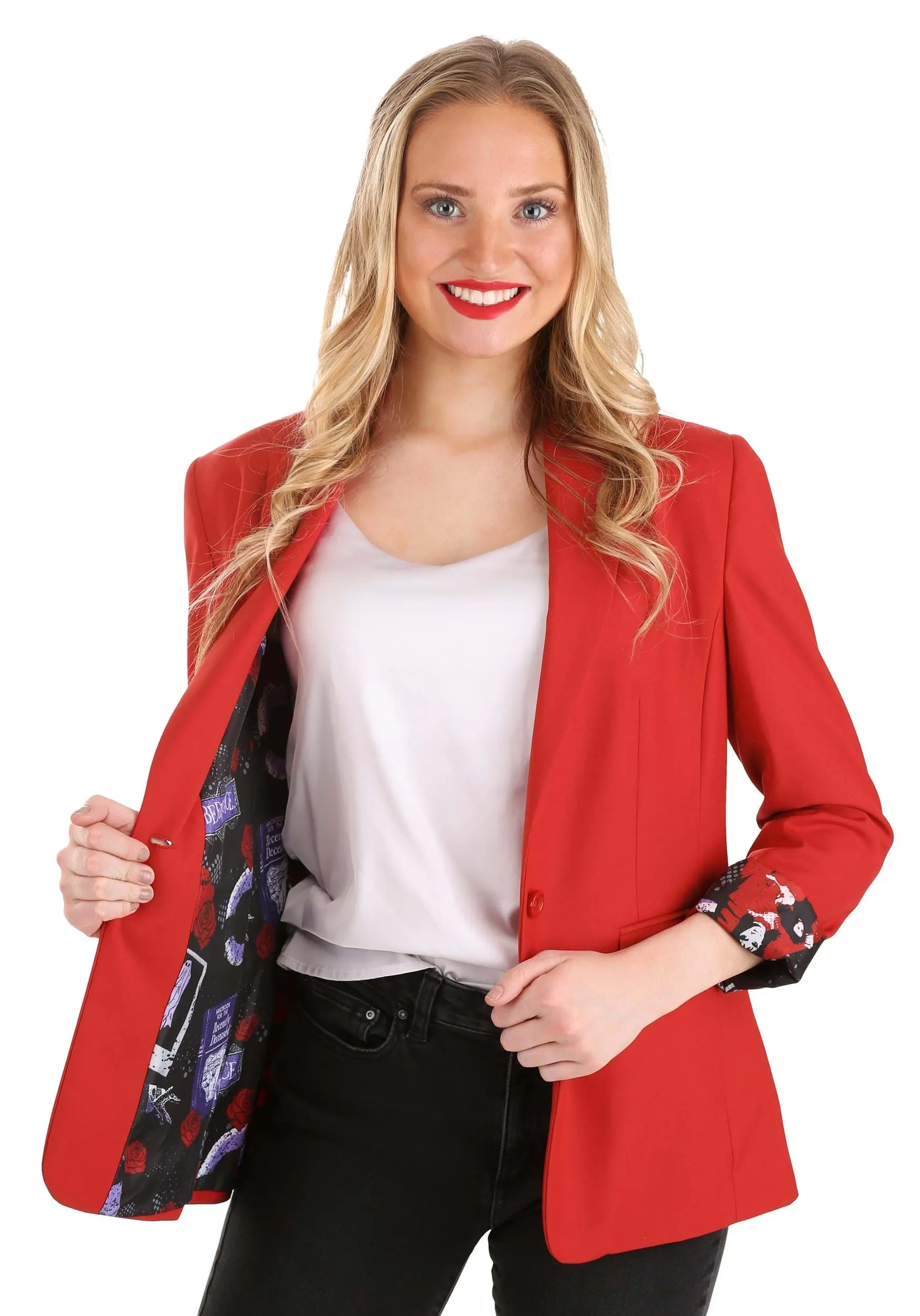 Channel all the fun of Beetlejuice while still sporting a stylish splash of color with this Lydia Deetz Red Blazer for Women. This is a Made By Us exclusive that won’t require you to know any secrets from the Handbook of the Recently Deceased to look like your favorite Beetlejuice buddy. The rich red jacket will look great with any ensemble (especially those goth black styles) and the lining features a print of all things Beetlejuice. (And now that we’ve said his name three times, we will really need someone with Lydia’s Neitherworld know-how!)