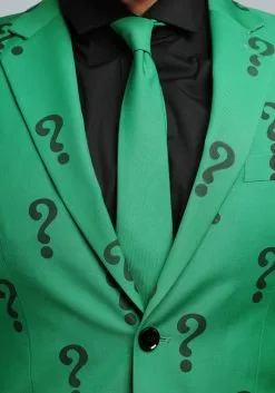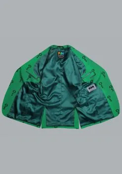 Riddle us this: do you fancy yourself to be a king of conundrums? If so, advertise your natural ability to solve puzzles by wearing mystifying professional apparel. The Super Heroes who put a target on your back will need to be bring their ‘A game’ if they want to successfully outsmart you! Those who doubt your puzzle-solving skills will swallow their pride and recognize that you’re the ultimate quiz master when they catch sight of you in this emerald suit jacket.