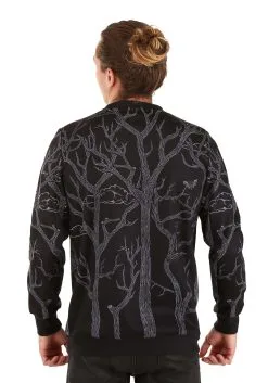 A conversation between witches… on a sweater that’s designed to keep you cozy this Halloween! Our Toil and Trouble Ugly Halloween Sweater is part of our Made by Us line of ugly Halloween sweaters, created by our team of designers. It’s made from a cotton and acrylic blend, so it’ll feel just as comfy as the sweater that grandma makes. This one has a witch-inspired design, complete with a bubbling cauldron full of who-knows-what. It’s mixed with an ominous skull, giving it truly spooky aura. You can wear it as a unique outfit option at your next Halloween costume party or add it to your fall wardrobe!