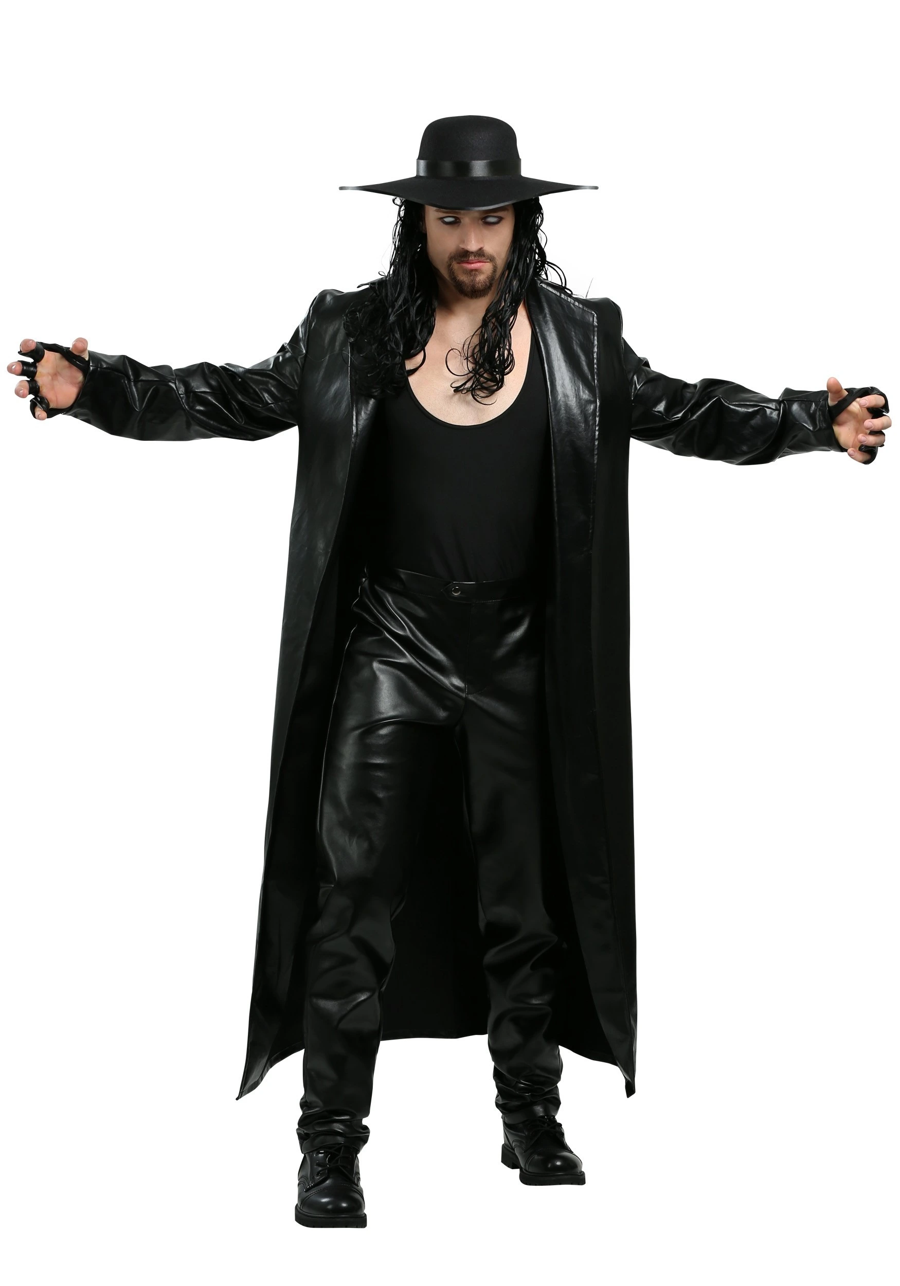 If you’re ready to take on the glory of the wrestling, there’s no better way to do so than with our WWE Undertaker costume. However you choose to embody the Undertaker’s showmanship and dynamic presence, feel comfortable in this authentic, officially licensed outfit. Included with the trench coat style long jacket, matching pants, and fingerless gloves is the iconic hat that features a soft-molded brim for a customized appearance. Now get out there, scare your enemies into submission, and claim your championship title!